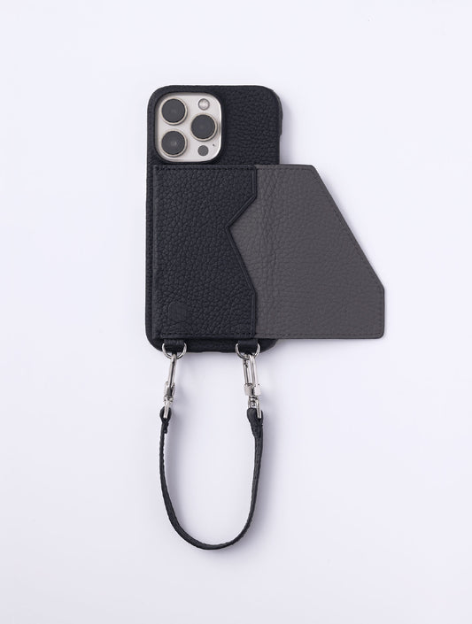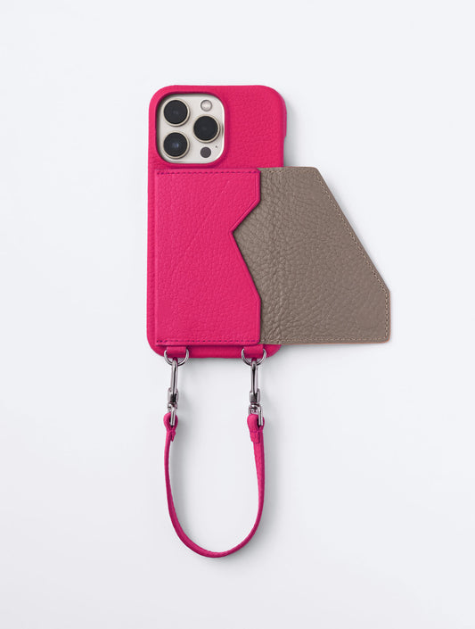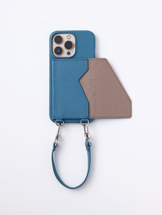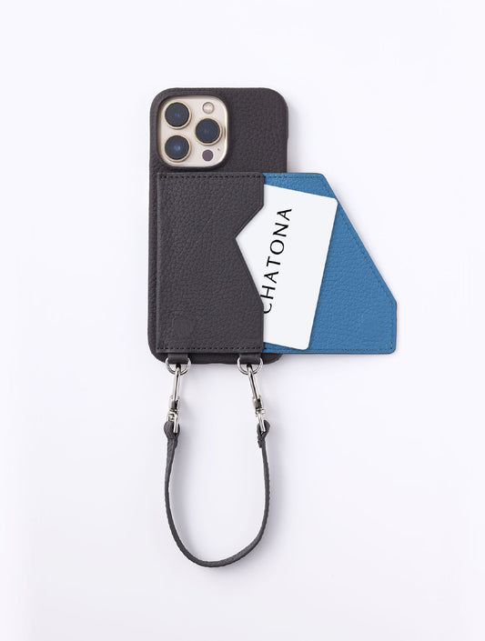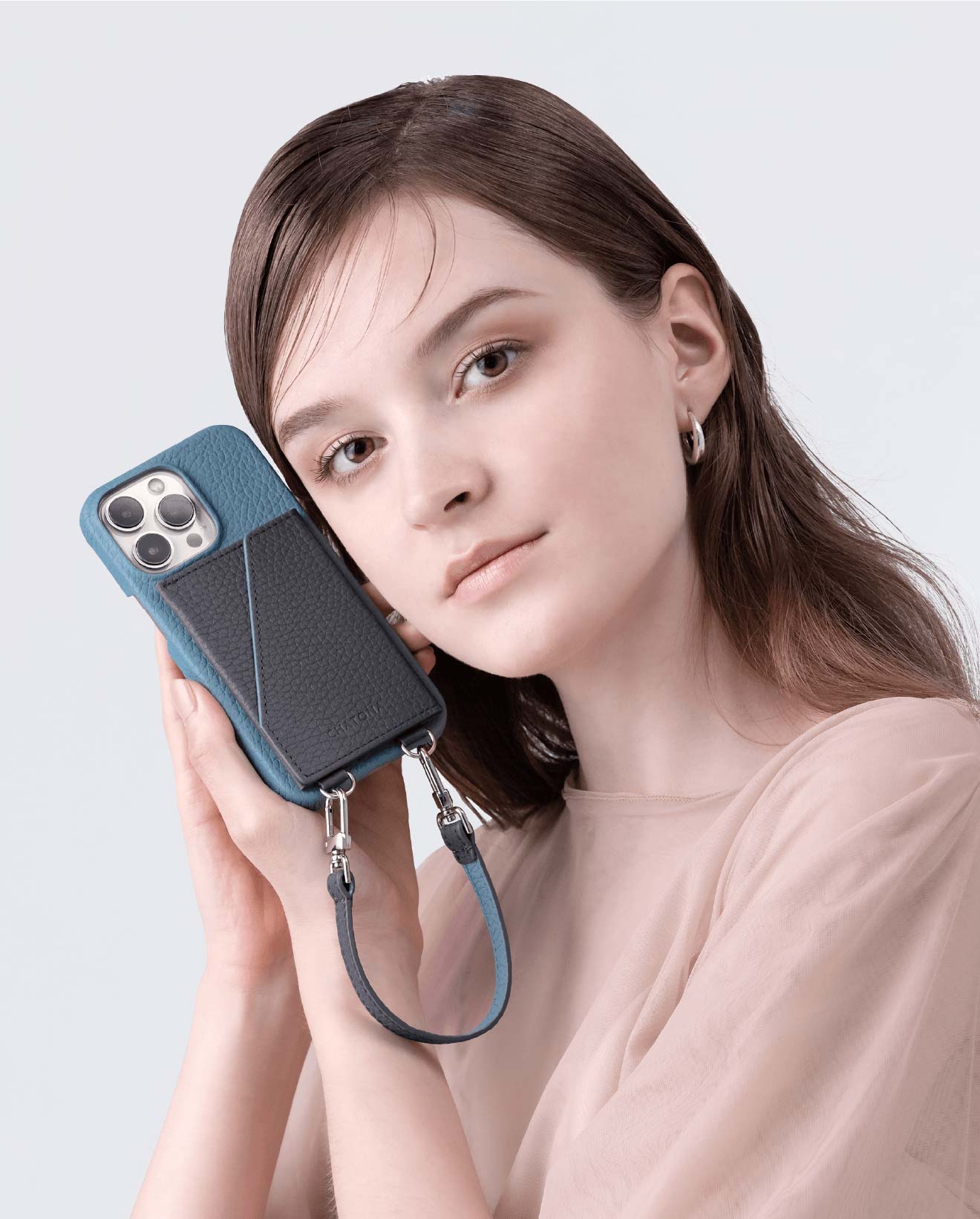 洗練された見た目と使い勝手に優れたiPhoneケース。本体7色×ポケット9色×ハンドストラップ14色のカラー展開からカスタムできます。背面カードポケットのインナーカラーがアクセントに。上質なレザーと、洋服のポケットにもスッと収まる薄さで、スマートかつユニセックスなデザイン。取り外しできるハンドストラップは落下防止にも。